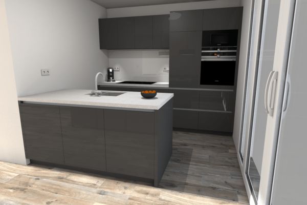 Zo ontstond de perfecte keuken. Uniek met haar metallic grijs hoogglans design en strak afgewerkt dankzij het greeploze design. De keuken is volledig op maat gemaakt. Geen grote paslijsten, voldoende licht en een moderne look. Een droomkeuken!